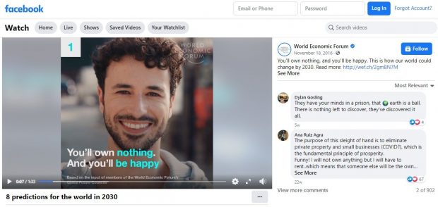 In addition to this extremely worrisome ideology that is only a stone’s throw away from eugenics, there has also been a great deal of disturbance over the 2016 World Economic Forum video that goes through their 8 “predictions” for how the world will change by 2030, with the slogan “You’ll own nothing, and you’ll be happy.”